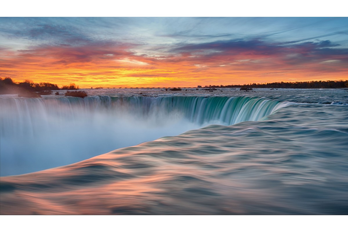 The sun rises over the horshoe falls in Niagara Falls, Ontario, Canada, one of the seven natural wonders of North America